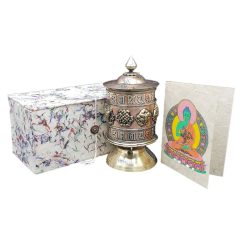 - Fine engravings with the 8 Auspicious Symbols and a Tibetan prayer mantra, signifying blessings, wisdom, and divine protection.