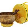 Our Jambati Singing Bowl comes in a tiny, portable meditation kit suited for traveling practitioners. The set is elegantly wrapped in a hand-stitched silk case with a convenient carrier handle for transportation. The cushion itself is hand-stitched with three layers of protection, so your bowl will be secure and protected during travel, whether for a meditation retreat, a yoga class, or just transporting it around the house.