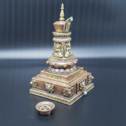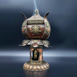This Vintage Incense Burner is a replica of a Buddhist stupa, a sacred monument in Tibetan Buddhism.