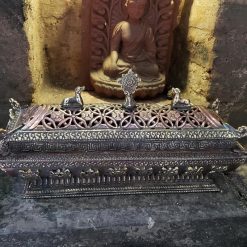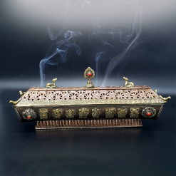 The elegant artwork of the burner replicates the architectural features of a common Tibetan temple. The four Buddhas crowned by the Sakya Muni Buddha render the artwork a very spiritual symbol, as each Buddha symbolizes various facets of Buddhist philosophy, offering protection and guidance. The burner directs divine energy into your space, being a spiritual landmark that calls forth awareness, peace, and enlightenment.Â